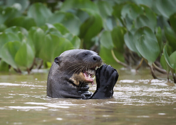 Giant River Otter takes a snack